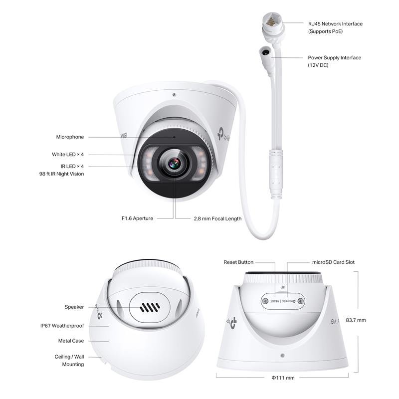 | Gece Görüşü | 24 Saat Full-Color / 30 Metre (Beyaz Işık + IR) |