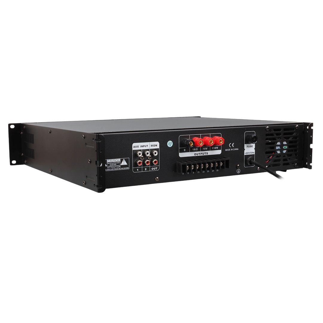 Bofmann BF-1005T çok alanlı mekanlarda ses dağıtımı sağlar. Beş bölge çıkışı her alanı ayrı kontrol eder. USB, SD ve Bluetooth kaynaklarını destekler. Mikrofon önceliği anons kullanımını kolaylaştırır.