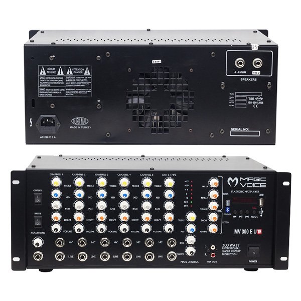 MAGICVOICE MV-300EU-TR 300 WATT 6 MİK. GİRİŞLİ USB*BT TRAFOLU MIXER KÜP ANFİ