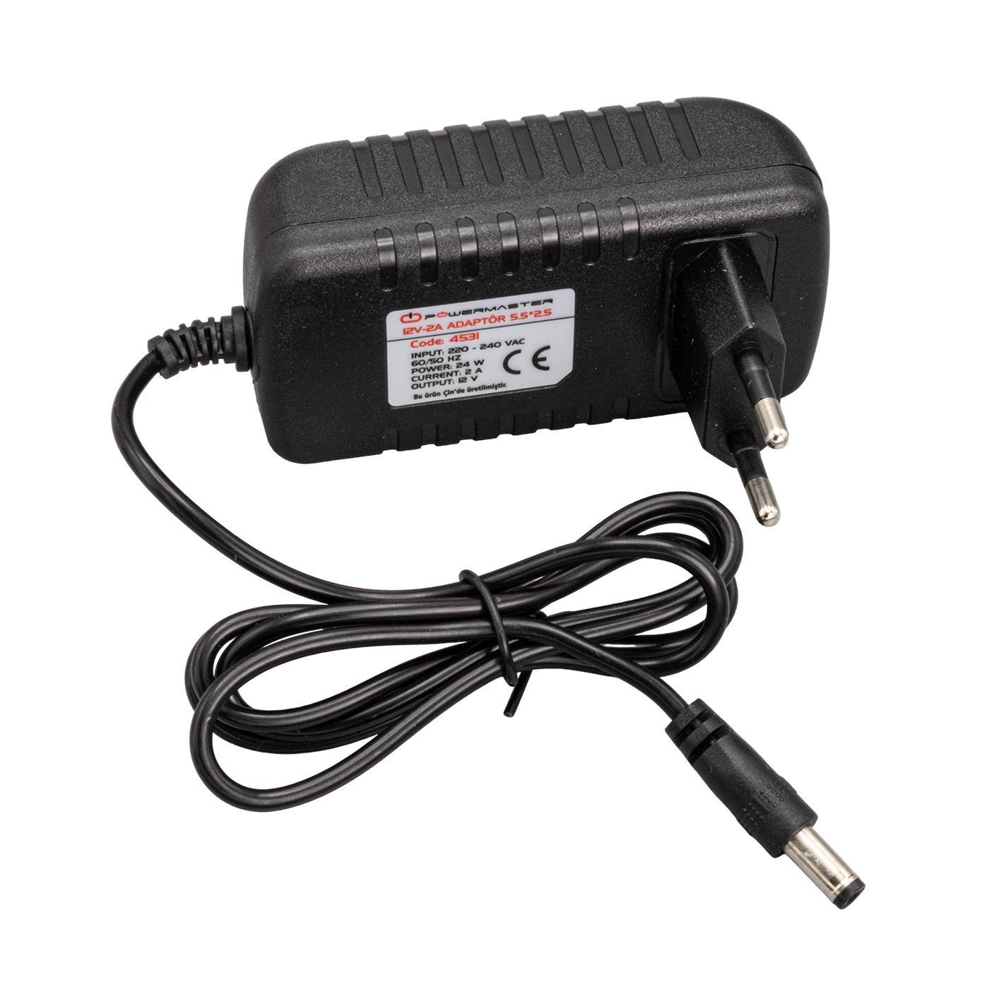 Powermaster PM-4531 12 Volt – 2 Amper 5.5*2.5 Mm Uçlu Plastik Kasa Priz Tipi Adaptör